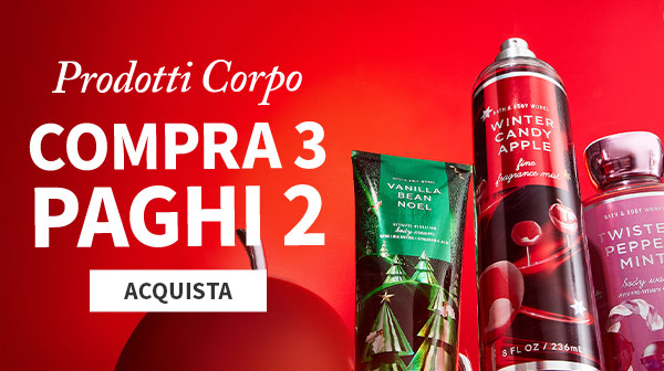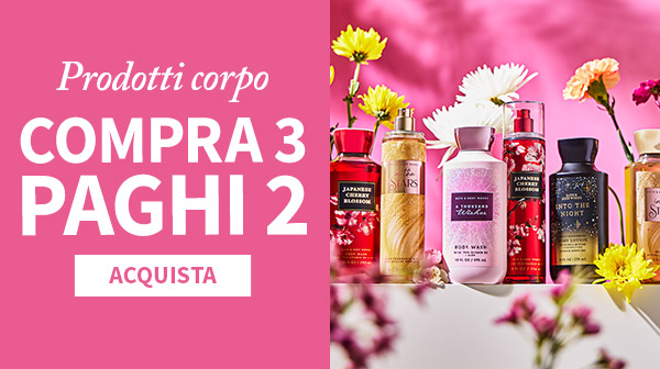Benvenuto nello spazio dedicato alle offerte di Bath and Body Works, questo è il posto prefetto per trovare tutte le promozioni, gli sconti e offerte del giorno. Dalle fragranze per le case a quelle per il corpo troverai sicuramente qualcosa adatto al mood in cui ti senti. Puoi approfittare delle nostre promozioni per testare i prodotti che non hai ancora provato. Siamo super emozionati per la nostra collezione corpo, e ti innamorerai delle nostre candele e dei nostri diffusori elettrici trasformando la tua casa in un paradiso.